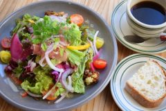 生ハムと彩り野菜のサラダセット1200円(パン・ドリンク付き)と、