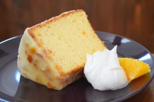 自慢のスイーツ、オレンジのシフォンケーキを姫は絶賛。