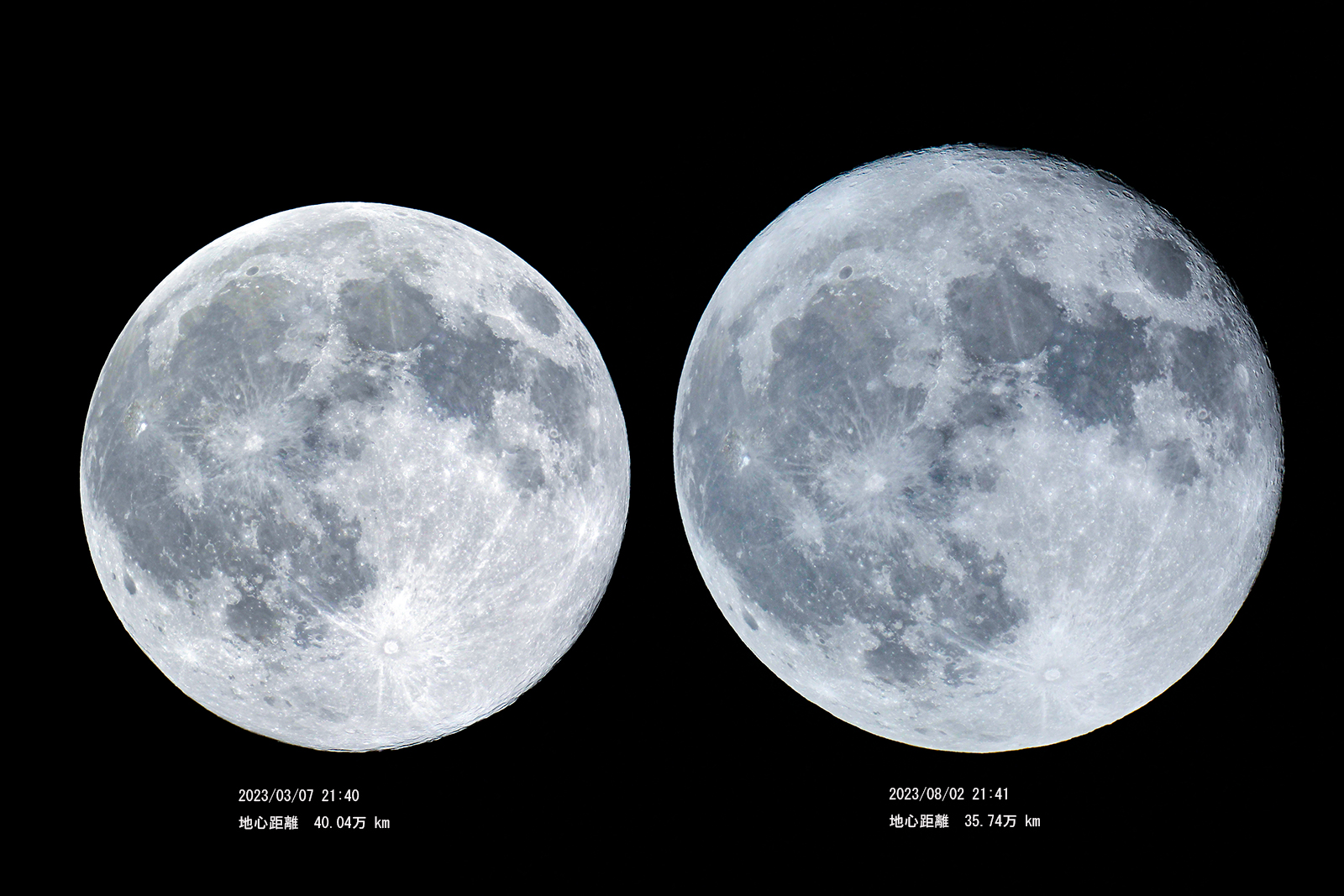 ミニマムムーンとスーパームーンの大きさ比較、右がスーパームーン(撮影:浦辺守)