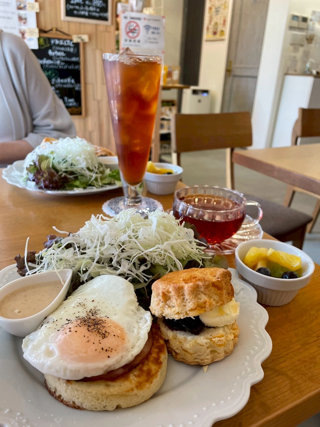 今回のクランペットは、ベーコンエッグがのせられていてボリュームもあり、