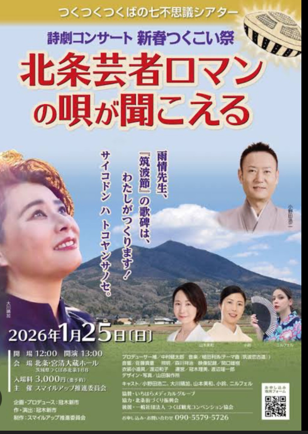 2012年春の北条竜巻被災で上演された詩劇「北条芸者ロマン〜筑波節を歌う女〜」の改訂版を14年ぶりに再演します。