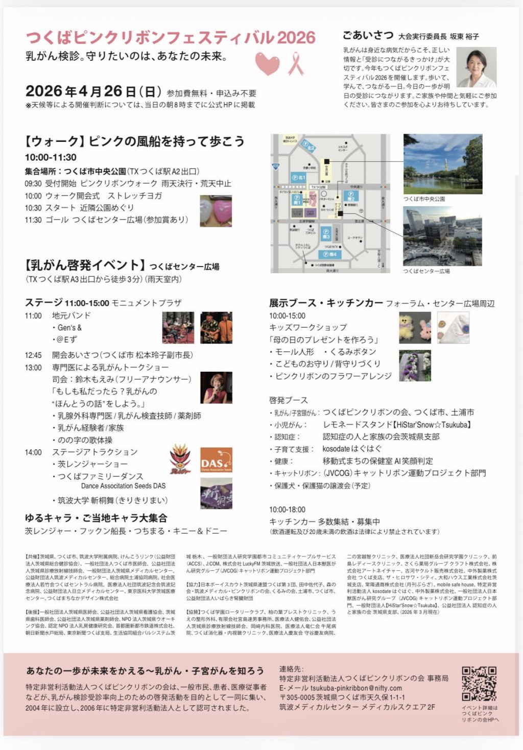 ・主催:NPO法人つくばピンクリボンの会/つくばピンクリボンフェスティバル2026実行委員会