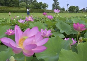 ニュース つくば市の最新情報をお伝えします。(提供:茨城新聞社) 2025/07/08 夏の朝、ハスが涼やか 土浦市大岩田の霞ケ浦総合公園で、ハスの花が見頃を迎えた。ハスは夜明けとともに咲き始め、気温が上がると花が閉じる。霞ケ浦の水を引いた約千平方メートルの池にピンクや白の約200種が咲き誇る。同園によると、花が閉じ始める午前10時ごろまでが観賞に適している。例年の見頃は8月上旬まで。今年は暑さの影響で開花が早まっているという。