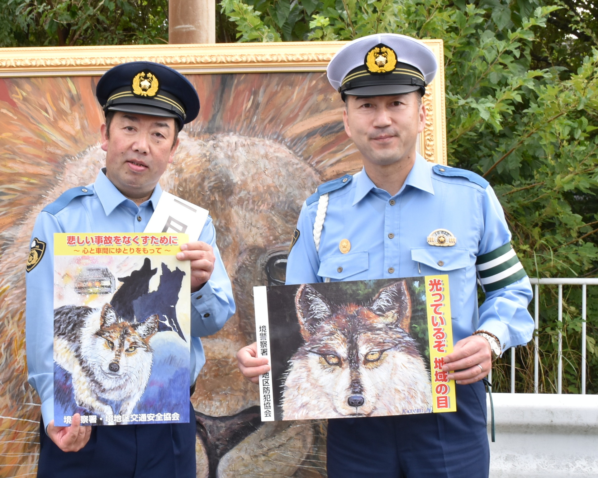 秋の全国交通安全運動(30日まで)に合わせ、境警察署は23日、地域の各種団体や企業、自治体とともに、境町の道の駅さかいで、交通安全キャンペーンを行った。