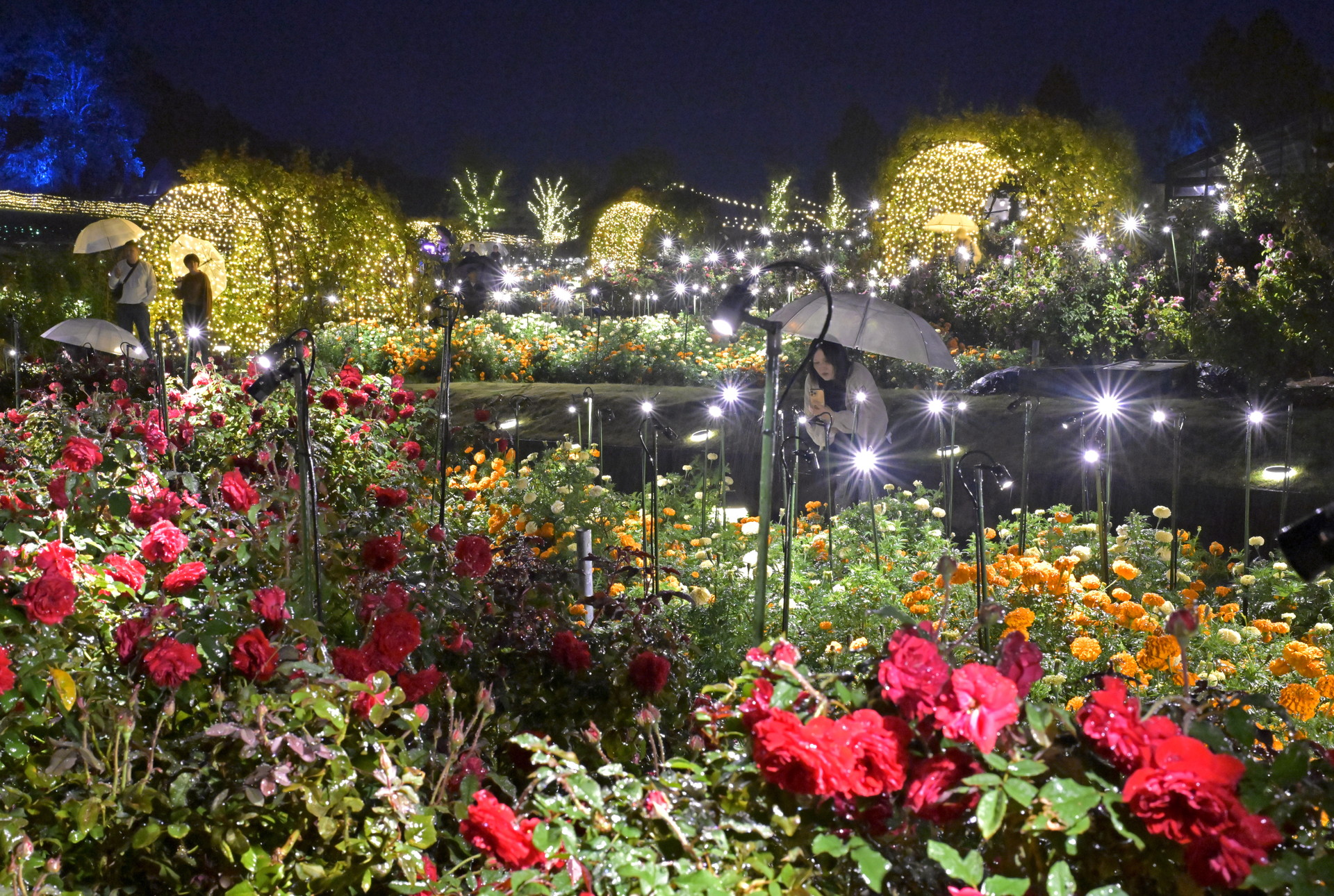 ニュース つくば市の最新情報をお伝えします。(提供:茨城新聞社) 2025/10/14 光が包むバラ園/フラワーパーク 石岡市のいばらきフラワーパークで、ライトアップイベント「ムーンライトローズガーデン2025」が始まった。見頃を迎えた秋バラやマリーゴールドが光に照らされ、園内は幻想的な雰囲気に包まれている。園内約1万平方メートルに、シャンパンゴールドの約25万個の発光ダイオードやランタンなどを設置した。