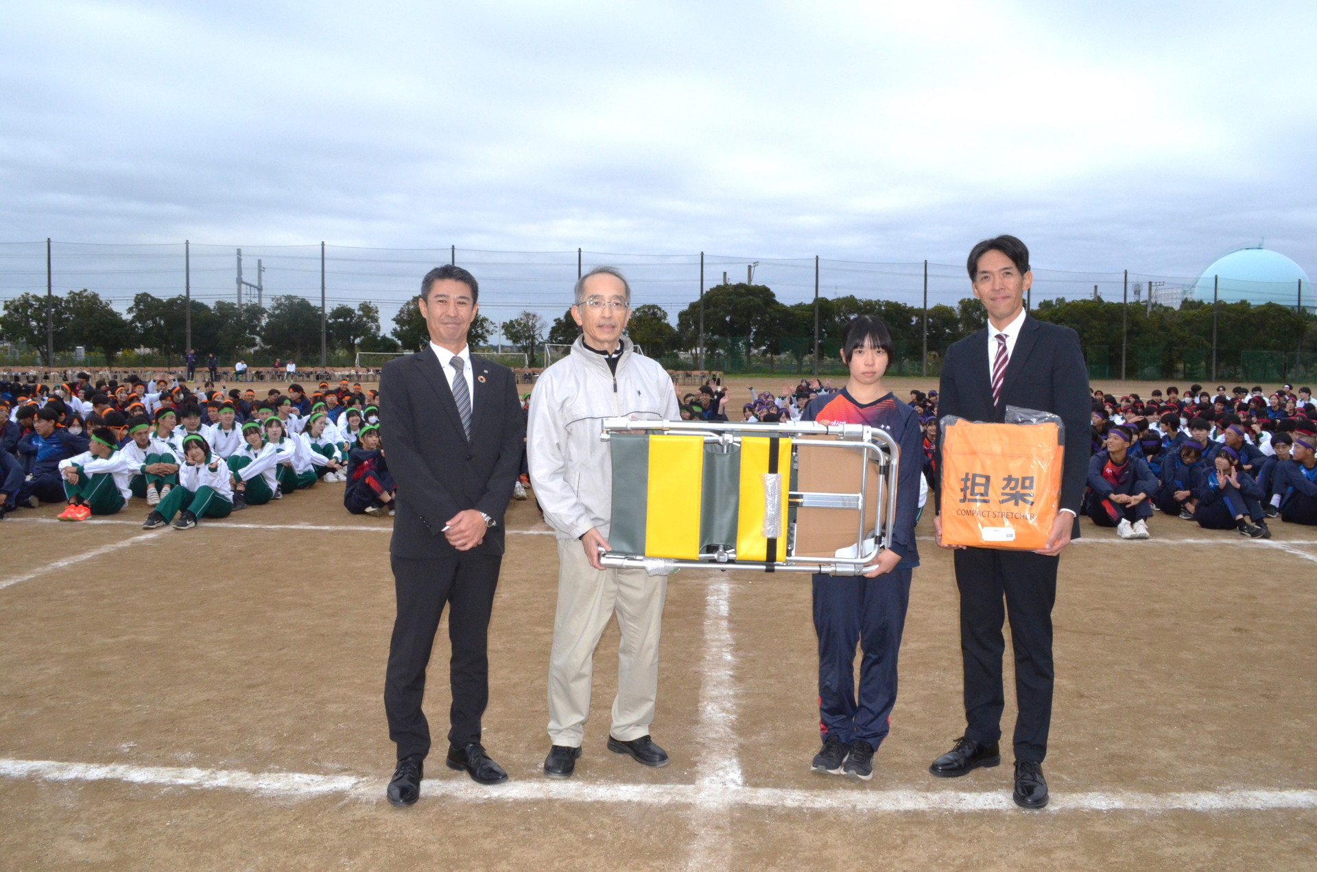 ニュース つくば市の最新情報をお伝えします。(提供:茨城新聞社) 2025/10/27 救護用の担架 藤代高に寄贈 運送・倉庫業の関東総業(取手市)は21日、筑波銀行の寄贈サービス付きSDGs私募債「地域の未来応援債」の発行手数料の一部を活用し、県立藤代高に救護用担架を贈った。介助者1人でも搬送可能な車輪付き折り畳み担架1台と軽量の布製簡易担架2台で、運動中や災害時のけが、熱中症患者の搬送などに役立てる。