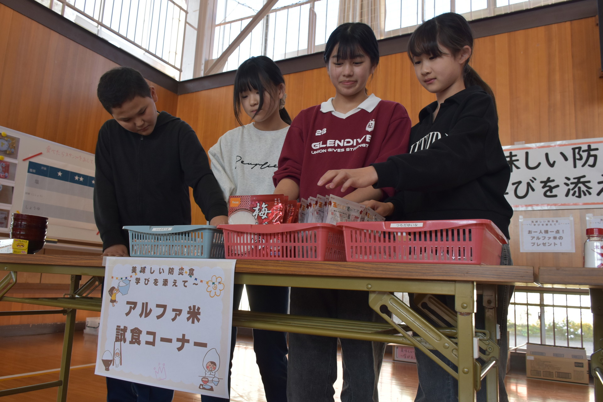これまでに学んだ成果を地域の人にも見てもらおうと、児童らが中心になって企画した。手作り可能な防災グッズの紹介や防災食の試食などを行う。