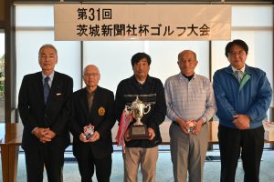 ニュース つくば市の最新情報をお伝えします。(提供:茨城新聞社) 2025/12/05 曽根さん57人の頂点 第31回茨城新聞社杯ゴルフ大会が4日、筑西市茂田の下館ゴルフ倶楽部で行われた。県内外の57人が18ホールストロークプレー、シングルぺリア方式で熱戦を繰り広げた。表彰式では上位入賞者に盾や副賞が贈られ、広沢商事の宮城則之社長、茨城新聞社の小田部卓相談役から祝福を受けた。上位成績は次の通り。(敬称略)①曽根満也②山中正③篠塚功④宮内実⑤西沢義幸⑥小吹静彦