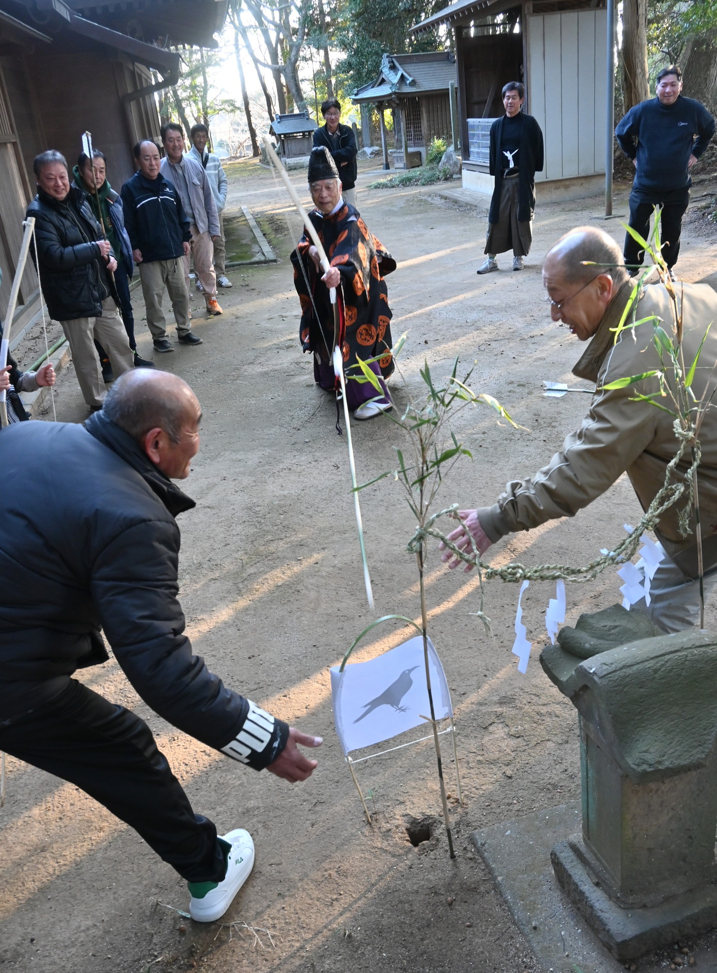 ニュース つくば市の最新情報をお伝えします。(提供:茨城新聞社) 2026/01/19 「伝統神事」オビシャ 取手市野々井の白山神社の境内で18日、カラスが描かれた的に弓矢を射るなどして五穀豊穣や子孫繁栄を願う伝統神事「オビシャ」が行われた。神事の名称は、人が立って弓矢を射る「歩射」が由来とされる。かつて茨城、千葉両県の利根川流域で盛んに行われたが、近年では担い手不足で簡略する地区も少なくないという。同社では今も昔からの作法を守っている。