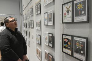 さまざまな色の廃ガラスを砕いて作った材料で、土浦市を象徴する催しや特産物などを表現した作品展が、土浦市の市民ギャラリーで開かれている。リサイクルや環境保全の大切さを知ってもらおうと土浦市が毎年企画している。土浦市内の小学生の作品344点を展示している。会期は23日まで。